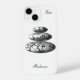 Behalt ruhig und genieße eine Tasse deiner Lieblingsbraue in diesem schlichten, sauberen, ästhetischen Marmorzen-Design aus drei glatten, ovalen Steinen, die in einem vertikalen Stapel angeordnet sind, mit dem größten Stein am Boden, einem mittelgroßen Stein in der Mitte und dem kleinsten Stein an der Spitze, was ein Bild der perfekten Zen-Balance schafft.