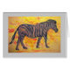 zeigt gemischte Medienmalerei lila Zebra mit blauen Streifen und "Zen Zebra" Slogan !