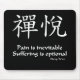 Kanji für Zenfreude mit dem Zen-Buddhistsprichwort, "Schmerz ist unvermeidlich und leidet ist optional".