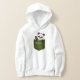 Diese Abbildung zeigt einen niedlichen Panda, der aus einer grünen Tasche herausguckt. Der Panda lächelt mit geschlossenen Augen und eine Pfote erhöht, wodurch eine spielerische Touch hinzugefügt wird. Die grüne Hosentasche ist mit schwarzen Stichen versehen, die das realistische Gefühl des Cartoon verstärken. Dieses bezaubernde Bild verbindet die Schnittlichkeit eines Panda mit dem skurrilen Konzept einer Tasche, sodass es so aussieht, als ob sich der Panda in der Tasche spielerisch versteckt oder unterhält.