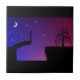 Ein zeichn eines stehenden, auf einer gebrochenen Brücke silhoutierten Mannes, der über den Golf blickt, wo ein einsamer Wildbaum steht. Hinter ihm liegen der Mond und die Sterne in einem dunkelblauen Himmel, die auf der anderen Seite zu Rot fliegen, um den Sonnenaufgang zu beginnen. Ein Beispiel für die Emotionen der Hoffnung, Verzweiflung und Einsamkeit, wenn er das Ende der Straße erreicht und den Weg unpassierbar findet.