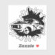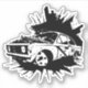 Eine einfache, schwarze, flache Abbildung eines defekten und verwüsteten Kraftfahrzeugs, das für den Schrottheap bereit ist.