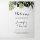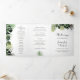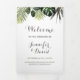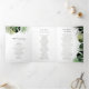 Dieses dreiseitige Hochzeitsfeierprogramm bietet üppige tropische Pflanze, die in Aquarellfarben handgemalt werden. Modern, exotisch und perfekt für eine Hochzeit in Urlaubsort.
