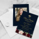 Skript und schöne burgundy Marine Aquarell Blume. Sie können diese Einladungsvorlage für den Abschluss mit Ihren eigenen Daten anpassen.