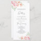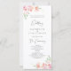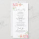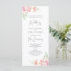 Lass deinen Gästen die schlichte Eleganz und Freude deines Hochzeitstages mit diesem schönen, modernen Design, das mit blauen rosa und korallenblühenden Aquarellbouquets mit goldenen Akzenten besticht. Die Titel "Hochzeit von", "Zeremonie", "Hochzeitsfeier" und "Danke" sind in einem stylischen, dunkelgrauen Skript geschrieben. Sie können die Begrüßung, Ihre Namen, Hochzeitstag und Zeremonie Ereignisse auf der Vorderseite und die Hochzeitsfeier und persönliche Dankesbotschaft auf der Rückseite, alles in einfacher eleganter Koordination Typografie personalisieren. Ideal für Hochzeiten im Sommer, im Freien und im Garten. Dieses Programm ist für die Koordination mit unserer Hochzeitskollektion Pink, Coral und Gold Floral Watercolor konzipiert.
