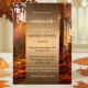 Gedenkveranstaltung, Beerdigung oder Feier der Lebensdiensteinladung mit einem farbenfrohen Herbstwald mit transparentem Hintergrund. Auf der Rückseite können Sie das Waldbild durch Ihr eigenes Foto ersetzen, wenn Sie möchten.