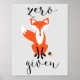 Ein lustiges und einzigartiges Poster mit moderner Kalligraphie und Fuchsdarstellung. Die Lage ist perfekt, um die Stadt zu erkunden.