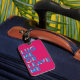 Dieser Gepäckanhänger sagt es allen! Zerren Sie mich oder verlassen Sie mich! Dieses lustige Ausrüstungsbeschreibungen ein elektronischer blauer dekorativer GROTESK-Schriftart mit einem Beerenrosahintergrund. Unterschiedliches Farbkombination- und Zusammenbringengepäck für Ihre Reisen!