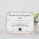 Moderne Rose Gold Marble Certificate of Completion Awards.