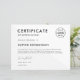 Ein einfaches Logo-Zertifikat im modernen minimalistischen Stil. Die vielseitige Vorlage kann mit dem Prämientyp (Abschlusszertifikat, Anerkennung, Erkennung usw.) und weiteren Details zur Erfassung der Erfolge oder des erfolgreichen Abschlusses eines Kurses oder einer Aufgabe für jeden Mitarbeiter angepasst werden. Sie können eine benutzerdefinierte Signatur hochladen oder per Hand löschen und signieren.
