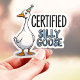 Auf diesem lustigen Aufkleber befindet sich eine goofy goofy gose mit einem Party, das mit dem Aufdruck "Certified Albern Goose" versehen ist. Ideal für alle, die sich ihrer albernen Seite verschrieben haben! Dieser haltbare Vinyl-Aufkleber eignet sich hervorragend für Laptops, Wasserflaschen, Telefonzellen und vieles mehr. Fügen Sie Ihren Besitztümern eine Touch Lachen und Lachen hinzu.