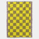 Ein fett gemustertes Schachbrettmuster, das sich zwischen zest-grünen und sauren gelben Quadraten abspielt und ein lebendiges und dynamisches visuelles Design schafft.