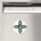 Indianeramerikaner Zia Sun Gott, mit Turuqoise, Rot und Gold auf den Göttern Gesicht.