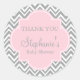 Graue und weiße Zickzack Muster mit pastellrosa Akzent Babydusche Dank Aufkleber. Graue und weiße Zickzack und in der Mitte befindet sich ein pastellrosa Rechteck mit dem eigenen Text.