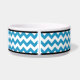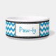 Stilvolle Keramikhundeschüssel entwarf mit einem blauen u. weißen Zickzack Zickzackmuster und ein personalisiert mit dem Ihrem Namen des Haustieres.