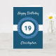 Eine personalisierte, blaue 19. Geburtstagskarte, die Sie leicht mit seinem Namen auf der Vorderseite der Karte personalisieren können. Sie können auch die innere Kartenmeldung personalisieren, wenn Sie gewollt haben. Diese personalisierte 19. Geburtstagskarte für ihn würde einen tollen Sake machen.