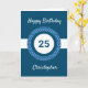 Eine personalisierte, blaue 25. Geburtstagskarte für ihn, die Sie mit seinem Namen auf der Vorderseite der Karte leicht mit dem Alter, das Sie brauchen, personalisieren können. Sie können die Insider-Kartenmeldung leicht personalisieren, wenn Sie gewollt haben. Diese blaue personalisierte 25. Geburtstagskarte für ihn würde einen einzigartigen Sake machen.