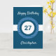 Eine personalisierte blaue 27. Geburtstagskarte für ihn, die Sie leicht mit dem Alter, das Sie brauchen, und seinem Namen auf der Vorderseite der Karte personalisieren können. Sie können die Insider-Kartenmeldung leicht personalisieren, wenn Sie gewollt haben. Diese blaue personalisierte 27. Geburtstagskarte für ihn würde einen einzigartigen Sake machen.