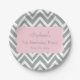 Graues und weißes Zickzack Muster mit pastellrosa Akzent Geburtstagsparty Dinner Papier Teller. Graue und weiße Zickzack und in der Mitte ist eine pastellrosa Vierblattform mit Ihrem eigenen Text.