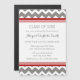 Individuelle magnetische Graduierung Party Einladungskarte in eleganten, hellen roten, dunklen Holzkohle grau und weiß Retro Zickzack Zickzag Streifen Muster.