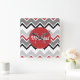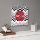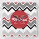 Dieses Zickzack Design in Rot, Grau und Schwarz hat einen roten Kreis mit weißem Nahtmuster. Passen Sie Ihren Namen und Ihre Initialisierung an. Ein zeitgenössisches Design, das jeden Tag aufheitert.