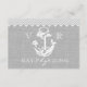 Nautischer grauer und weißer rustikaler Anker und Zickzack oder Zickzack Stil Design RSVP Karte zu ergänzen Einladung. Das Anchor-Design mit Seil und dem Look des grauen Einbruchs auf dieser einzigartigen Strandhochzeit-Einladung.