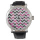 Zickzack Kuh - Hot Rosa und Schwarz Armbanduhr