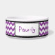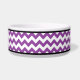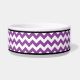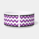 Stilvolle Keramikhundeschüssel entwarf mit einem lila u. weißen Zickzack Zickzackmuster und ein personalisiert mit dem Ihrem Namen des Haustieres.