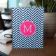 Zickzack Muster mit Monogram - Navy Magenta Notizblock