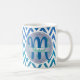 Zickzack Muster Monogram, blau und grün Kaffeetasse