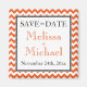 Stilvoll Sonderanfertigungen Der Date Magnet für die Ankündigung Ihrer Hochzeit speichern, mit einem orangen und weißen Zickzack-Zickzack Muster.