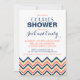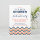Weiße und süße Einladung mit korallen, gelben und marineblauen Zickzackmustern. Die Einrichtung ist mit Zickzack Mustern unten und hinten. Ein einfaches und minimales Design für Ihren besonderen Tag. Passen Sie den Wortlaut für jede Gelegenheit wie Babydusche, Brautparty, Hochzeit, süße 16, Abschluss, Geburtstagsparty, Verlobungsfeier, Junggeselinnen-Abschied und mehr an.