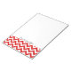 Personalisieren Sie Schreibwaren so einzigartig wie Sie mit einem roten Zickzack Notepad. Das Notizblock-Design weist ein abwechselnd rotes und weißes Zickzack Muster auf. Auch weitere Schreibwaren sind mit diesem Design erhältlich. Personalisieren Sie Ihr Notizblock so, wie es Ihnen am besten gefällt. Wenn Sie Hilfe bei der Personalisierung benötigen, kontaktieren Sie mich bitte direkt.