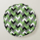 Zickzack Pfeil grün, weiß, grau und schwarz Rundes Kissen