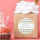 Zickzack, süßer und weißer Druck mit gelben Akzenten und 3D-Look Bändchen Baby Dusche Geschenketikett.