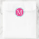 Zickzack-rosa Monogramm Runder Aufkleber