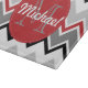 Dieser Zickzack Entwurf in den Tönen von Rotem, von Grau und von Schwarzem hat einen roten Kreis mit weißem Stichmuster. Fertigen Sie mit Ihrem Namen und Initiale besonders an. Ein zeitgenössischer Entwurf, der herauf den jeden möglichen Tag der Person erhellt.