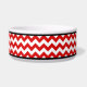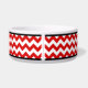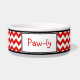 Stilvolle Keramikhundeschüssel entwarf mit einem roten u. weißen Zickzack Zickzackmuster und ein personalisiert mit dem Ihrem Namen des Haustieres.