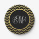 Zickzack Schwarz-Gold-Muster Triple Mit Monogramm Pappteller