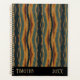 Zickzack und gewellte Streifen in Lederbraun, mineralgrün, Rot und Schiefergrau, die sich zu einem schönen und modernen Planer zusammensetzen, der für Büro, Schule oder Zuhause perfekt geeignet ist. Personalisieren Sie mit Ihrem Namen und das Jahr in einem schwarzen Band am unteren Ende.