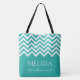 Eleganter Türkis und weißer Zickzack Zickzack stripe Brautjungfern-Taschentaschen. Stilvoller Zickzackdruck mit personalisiertem Namen, Monogramm oder lustigem Zitat. Moderner Musterentwurf für Braut und Bräute Crew oder Entourage. Kundengerechte Hintergrundfarbe. Niedlicher DIY Hochzeitszusatz für Brautpartyteam; Brautmädchen, Trauzeugin, Mutter der Braut, Blumenmädchen etc. Spaß für trendy Hochzeit, Chic-Brautparty, Junggeselinnen-Abschied, danke bevorzugt etc.-Änderung die Quantität, um den billigen Massenpreis zu erhalten. Noble Typografieschablone. Doppeltes versah Entwurf mit Seiten. Extragroßes. Kleine und große Taschen für Frauen und Mädchen.