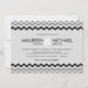 Graue und schwarze moderne Zickzack-Muster Hochzeitseinladungen mit weißem Ampersand und schlichte minimalistische moderne Typografie. Passen Sie Ihre coole und einzigartige Formulierung oder Verwendung so an, wie es ist. Ändern Sie die Schriftfarbe und den Stil, die Hintergrundfarbe, die Papierauswahl, oder verschieben Sie die Zick-Zahn-Zackenzähler, um bei Bedarf mehr Platz zu schaffen.