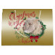 Dieses Weihnachtsgeschenk - Adorable Porträtmalerei eines Ziegenjungen Angoras mit Weihnachtsgrün, Heiligenbäumen und Beeren, einem roten Bogen und Misteloe - mit verziertem Kalligrafietext, der lautet: Weihnachten wünscht und Kinderziege auf abnehmbarem goldenen Hintergrund - entfernen Sie den Hintergrund, um Weiß zu zeigen oder einen beliebigen Farbhintergrund aus der angepassten Farbauswahl zu wählen - Perfect für das Googot in der Familie - werden sie nicht überrascht sein, dieses einzigartige Weihnachtsgottpaket am Weihnachtsmorgen zu sehen. Eine ©goatlady GetYerGoat™ Original.
