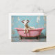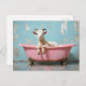 Ein skurriles Gemälde mit einer weißen Ziege, in einer Vintag rosa Badewanne entspannende Hörner, Set an einer hellblauen Wand für eine charmante und spielerische rustikale Szene.
