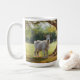 Diese Tasse hat eine hübsche Ziege mit einem zauberhaften Landschaftsbild.