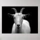 Großes Foto einer weißen Ziege auf schwarzem Hintergrund. Wenn Ihnen diese coolen Tiere gefallen, dann sollten Sie mit diesem phantastischen Foto verwandte Produkte und Geschenkideen Karo machen.
