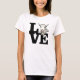 Mit diesem Bild auf einem Shirt von leichten Frauen - Retro-LIEBE in schwarzer Schrift und einem Ziegengesicht, das für das O In LIEBE verwendet wird