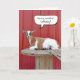 Braune und weiße Ziege auf einem alten Holzspultisch aus roter Scheune zum humorvollen Geburtstag. Text ist bearbeitbar.