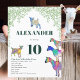 Lass dem Party Spaß mit diesem niedlichen Ziegenthema 10. Geburtstag Einladung mit Babyziegen und Ziegen stehend auf Ziegen. Farbenfrohe Aquarellkunst mit Ziegen in lebhaften Rosa, lila, blau, orange, gelb und Aqua-Farben mit grünem Blattwerk. Diese lustige Party Einladung ist leicht zu personalisiert, um eine einzigartige Party Einladung für Kinder und erwachsene Ziegenliebhaber zu schaffen. Einzigartiges Originalwerk von Catherine Sweetman
