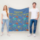Bleibe warm und schmutzig unter dieser bezaubernden Fleecedecke. Es zeigt Ziegenbilder, die ein buntes Pajamas-Set mit einem blauen Hintergrund und gelben Sternen tragen. Diese Decke ist bereit, mit einem Namen an der Spitze in lustigen gelben Schriften personalisiert zu werden.